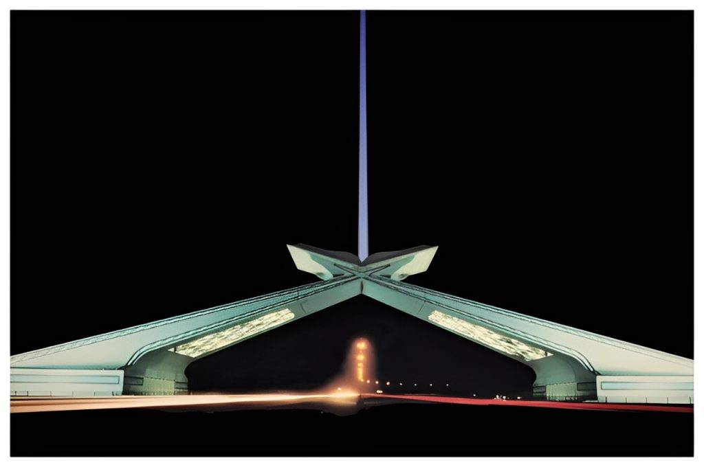 Sebutannya sebagai Gerbang Al-Qur’an bukan tanpa alasan. Jika diamati dari kejauhan, bentuk gerbang itu memang seperti lembaran mushaf yang dibuka lebar. Lekuk lengkungnya membingkai langit, sementara motif geometris khas arsitektur Arab seperti mengingatkan pada halaman-halaman kitab suci.